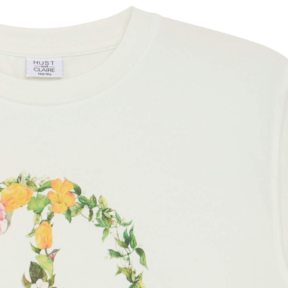 Ein besonderes Highlight ist der ausdrucksvolle Print auf der Vorderseite, der ein Peace-Zeichen zeigt, welches mit Blumen verziert ist. – ein echter Hingucker für nachhaltige Kids! Dank der bequemen Passform und der hochwertigen Verarbeitung bietet das Shirt optimalen Tragekomfort und viel Bewegungsfreiheit.