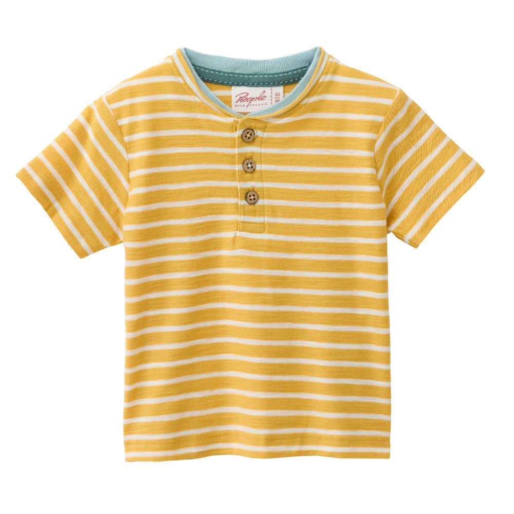 People Wear Organic Kurzarm-Shirt Henley honiggelb geringelt