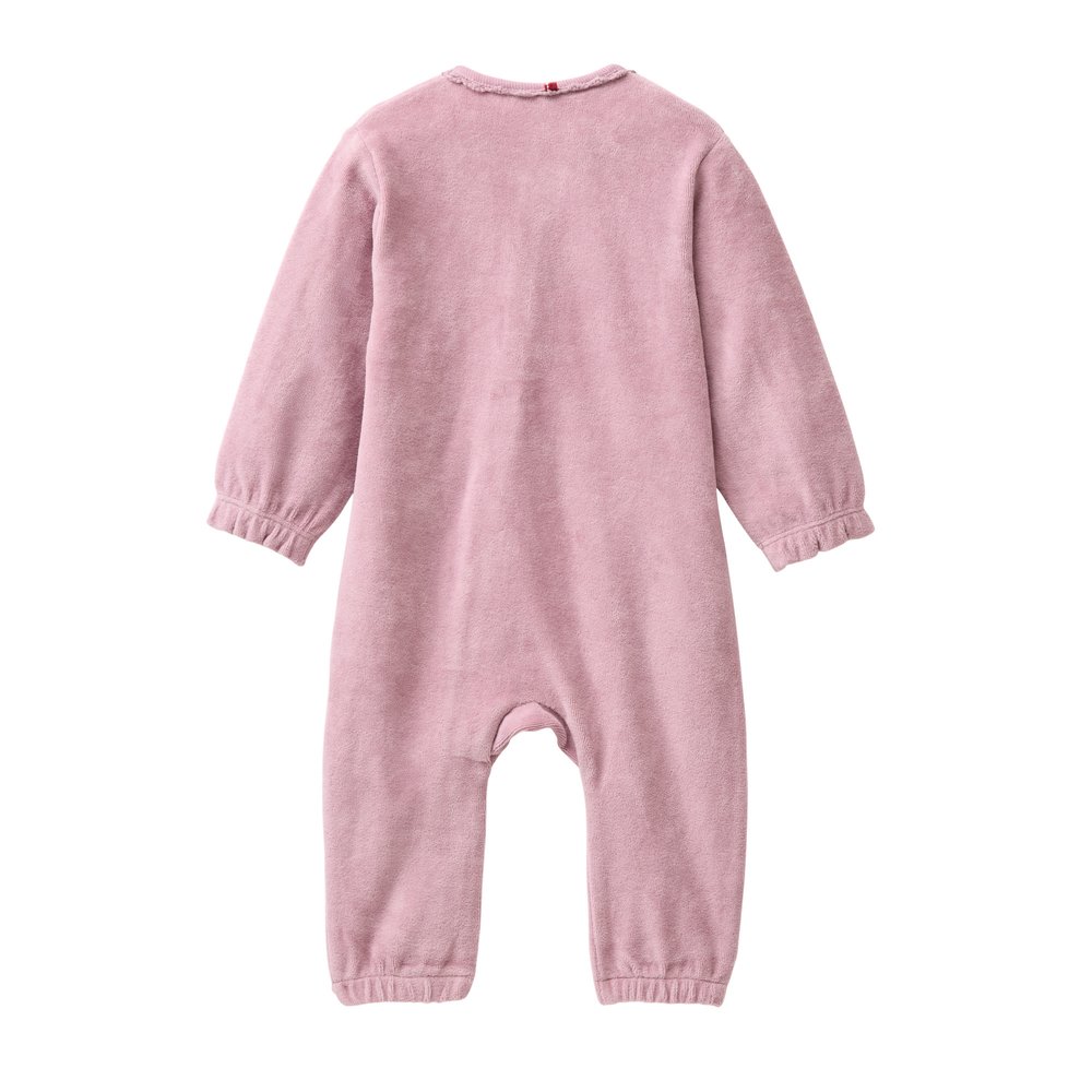 Die samtig weiche Nicki-Qualität sorgt dafür, dass sich Ihr Kind stets warm und geborgen fühlt. Die praktischen Details wie die gekräuselten Bündchen und der lange Reißverschluss erleichtern nicht nur das An- und Ausziehen, sondern auch den schnellen Windelwechsel. Geeignet für die Maschinenwäsche bei 40 Grad und trocknerbeständig, ist dieser Overall sowohl pflegeleicht als auch langlebig.