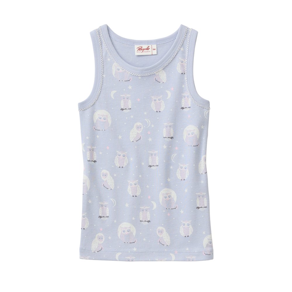 People Wear Organic Unterhemd Nachteule flieder in Blau für Mädchen – Ein komfortables und umweltfreundliches Kleidungsstück für den Alltag. Dieses bezaubernde Unterhemd ist perfekt für jede Tages- und Nachtzeit. Hergestellt aus 100% biologischer Baumwolle, garantiert es nicht nur Tragekomfort durch den weichen 1×1 Rippstoff, sondern unterstützt auch eine nachhaltige Textilproduktion.